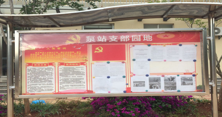 2015年中共云南水投牛欄江滇池補水工程有限公司泵站支部委員會為提高黨建工作服務水平,促進泵站全體職工學習多元化,泵站支部以展板畫刊模式創(chuàng)辦了公司黨建宣傳微窗口——泵站支部園地。